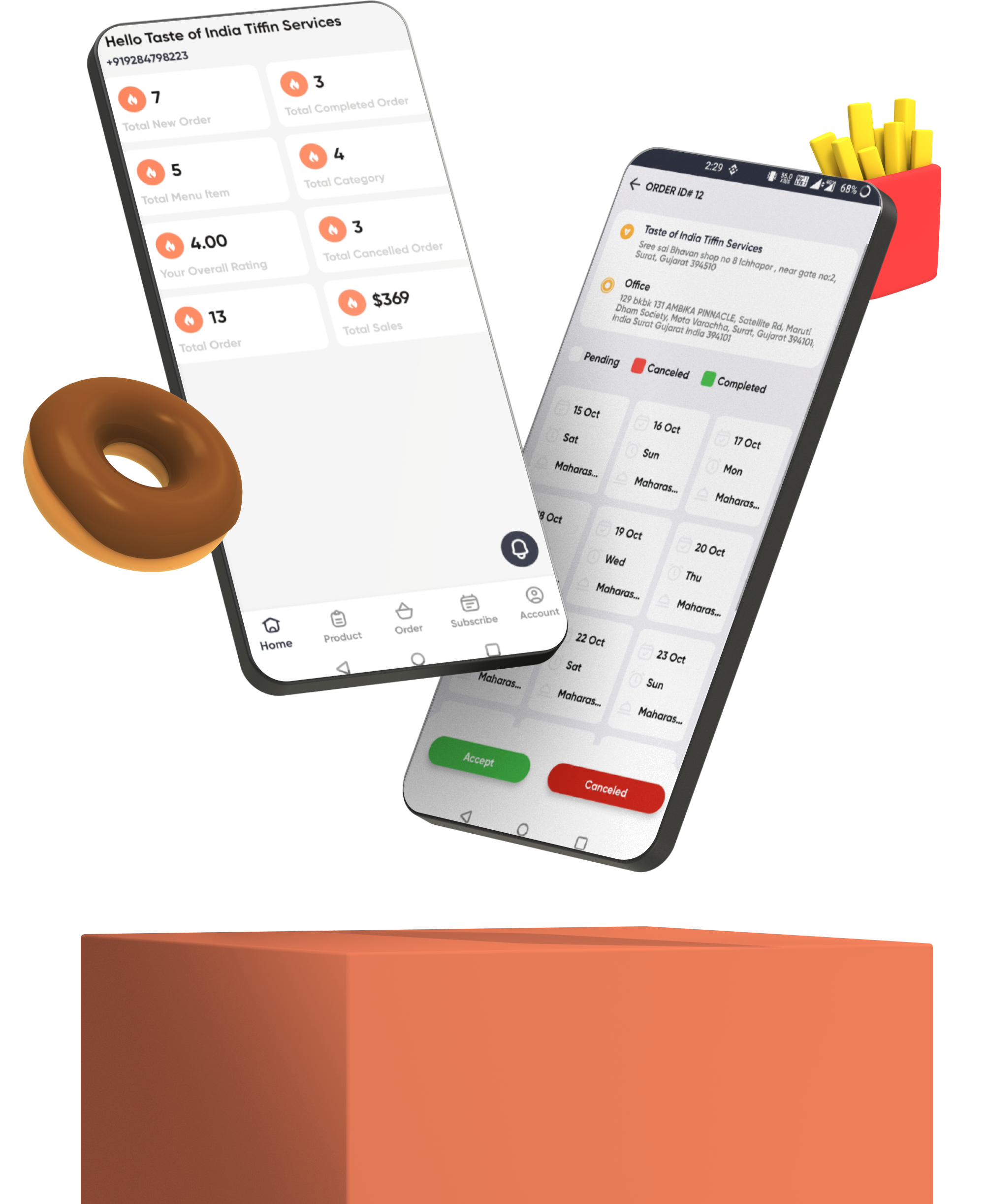 A Kitchen Owner or Chef app helps to accept or reject the LunchBox delivery orders placed by the customers.